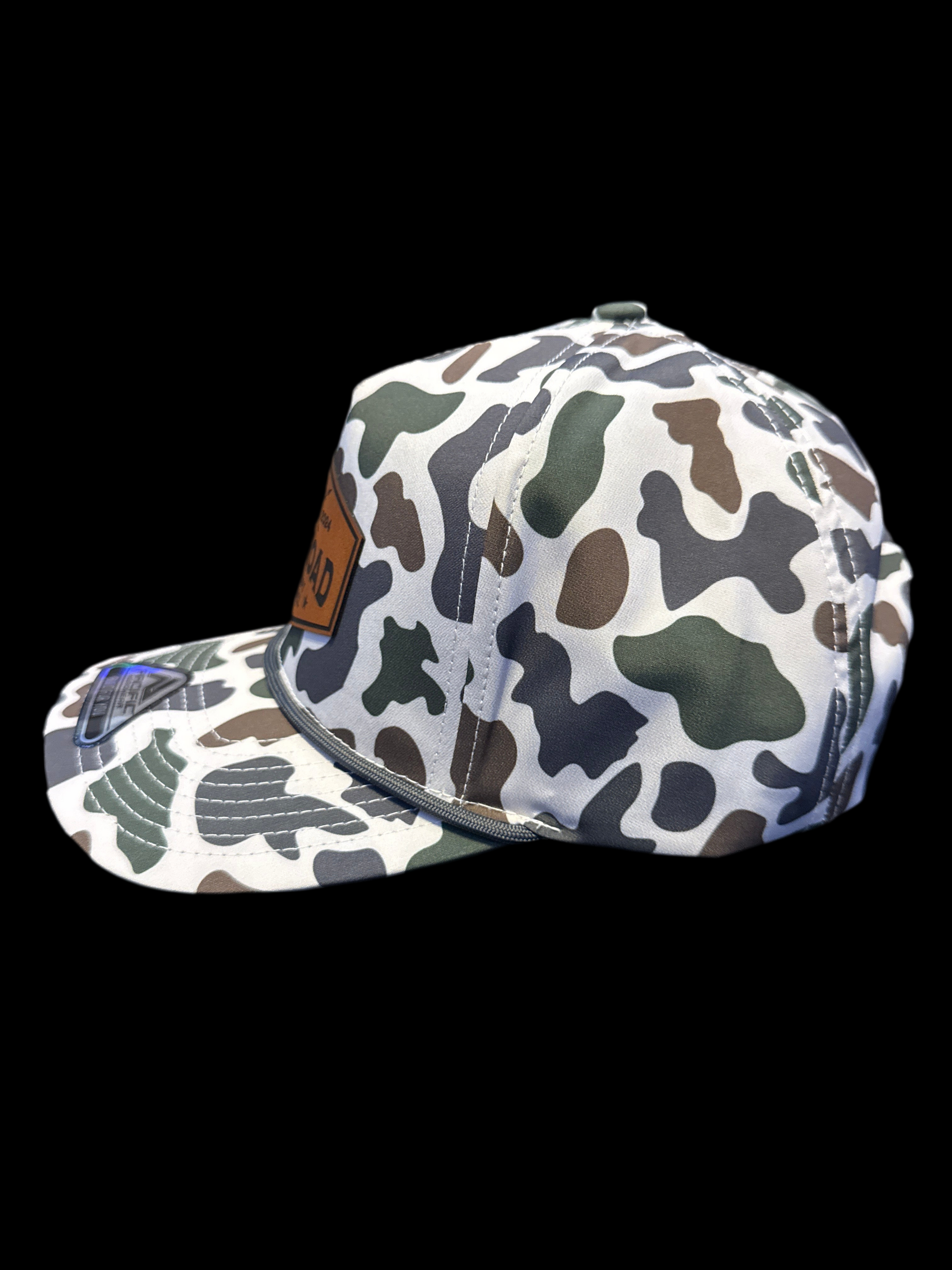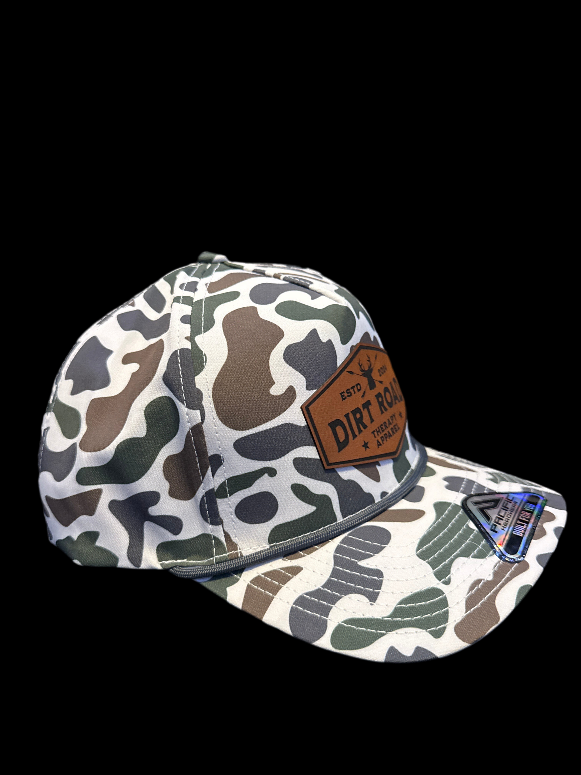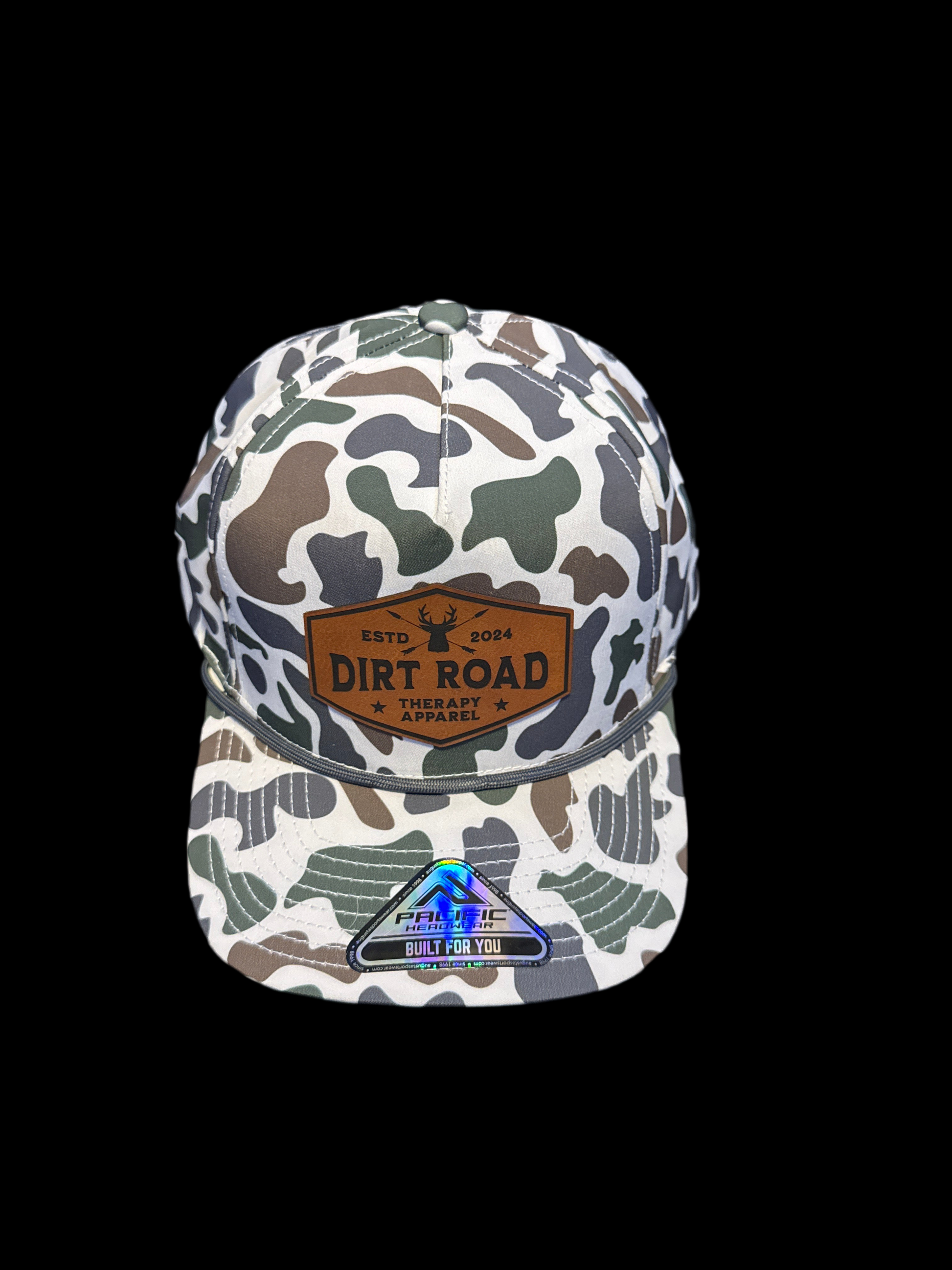 Stay camouflaged and stylish with our Timber duck camo hat featuring a rawhide colored patch from Dirt Road Therapy Apparel. Perfect for outdoor enthusiasts, this hat is a must-have for any adventure. Trust in the quality and experience of our camo gear.