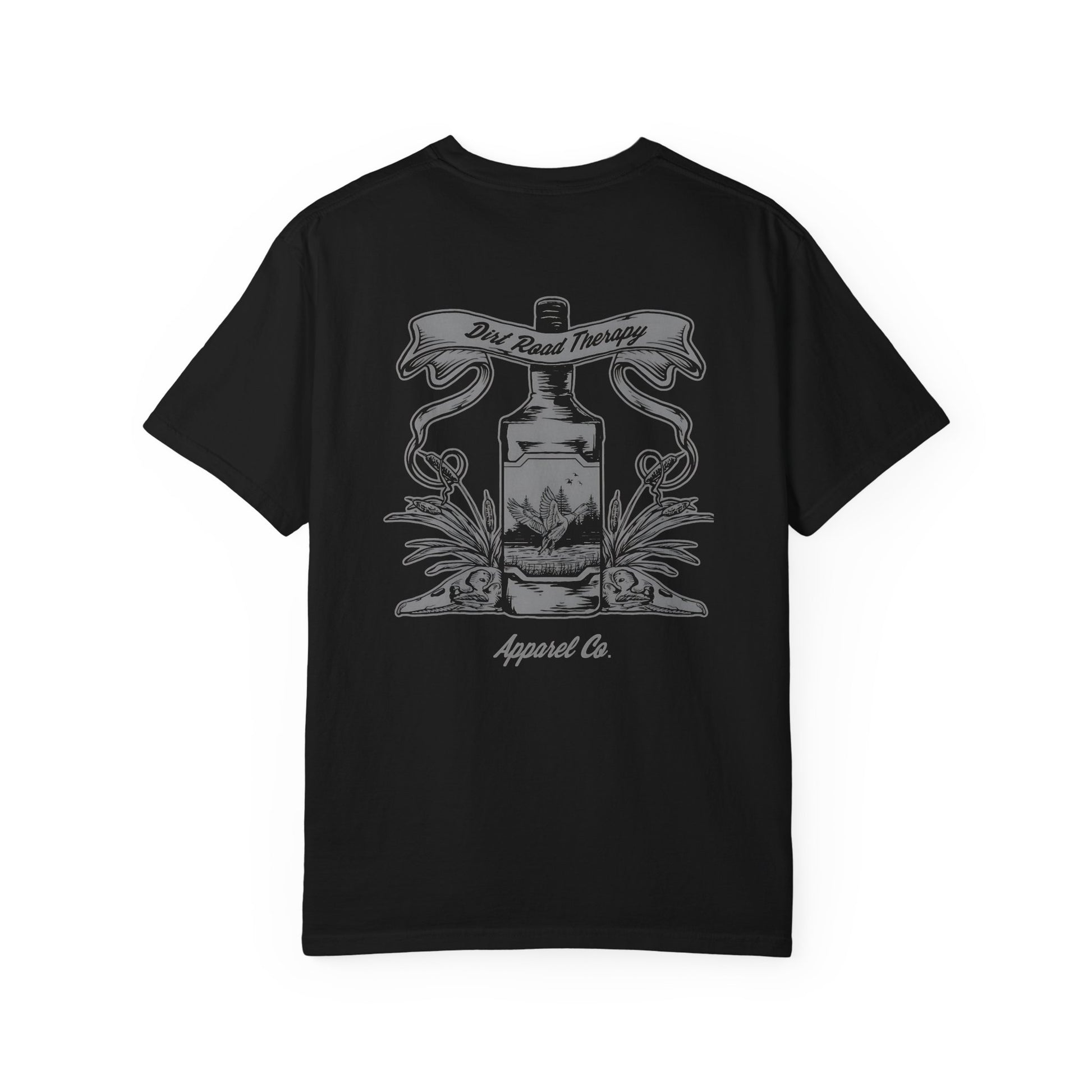 T-Shirt — Vintage Whiskey Bottle Graphic Tee (Back Print, 'Dirt Road Apparel Co')
